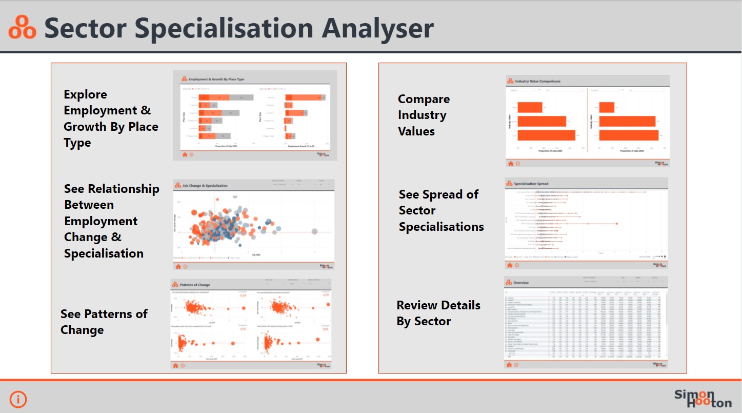 A data dashboard to explore the relationship between employment growth and sector specialisation.